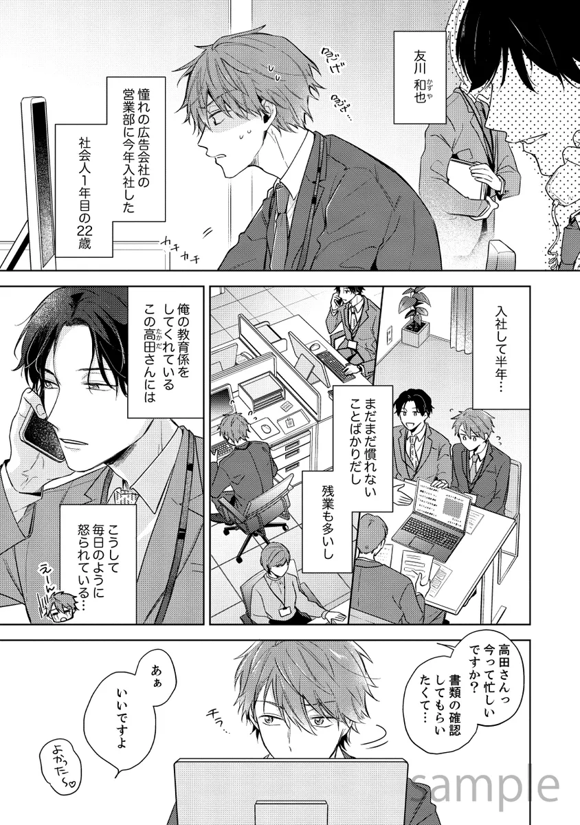 友川和也22歳。憧れの広告会社に入社した社会人一年生だ。入社して半年、まだまだ慣れないことも多々あるし、残業も多い。和也の教育係をしてくれている高田にはいつもこうして怒られている。日々の仕事のストレスを発散するために和也は、こうしてゲイ向けのオナニー配信をしている。自分の事を褒めてくれるのはリスナーだけ…。和也の唯一の居場所だった。そんな時、とんでもないことが起こる。なんと高田にそのオナニー配信がバレてしまったのだ。これお前か?腹にあるほくろが完全に一致。そして、高田に誰もいない部屋に連れていかれて問い詰められる。この会社を辞めたくない…。和也の頭にあるのはそのことばかり。高田は和也のズボンを脱がしてアナルに指を入れ出す。和也はその刺激によって射精してしまい…。