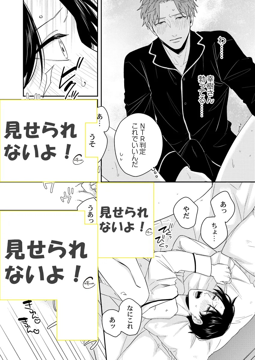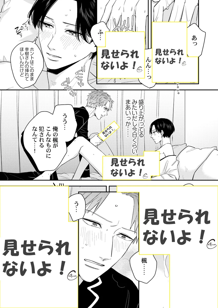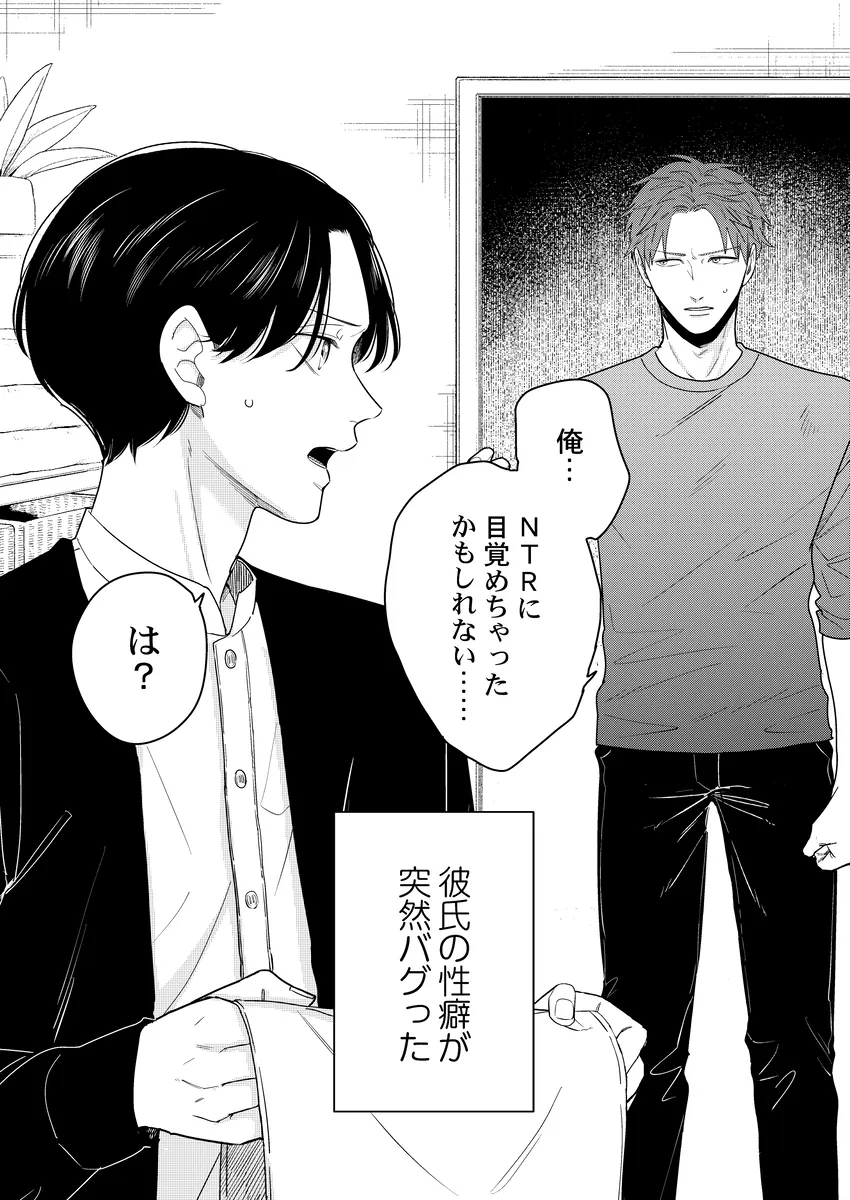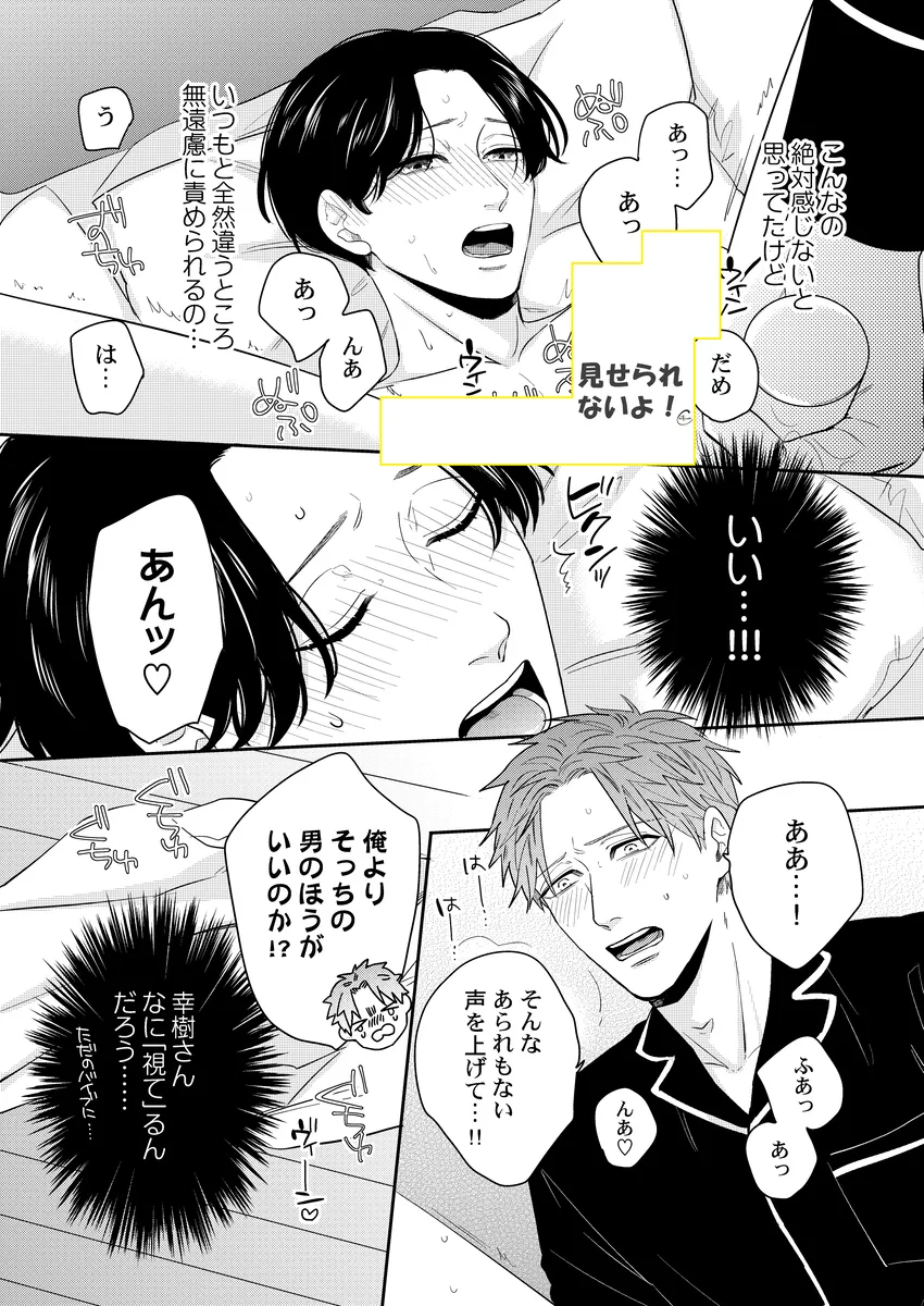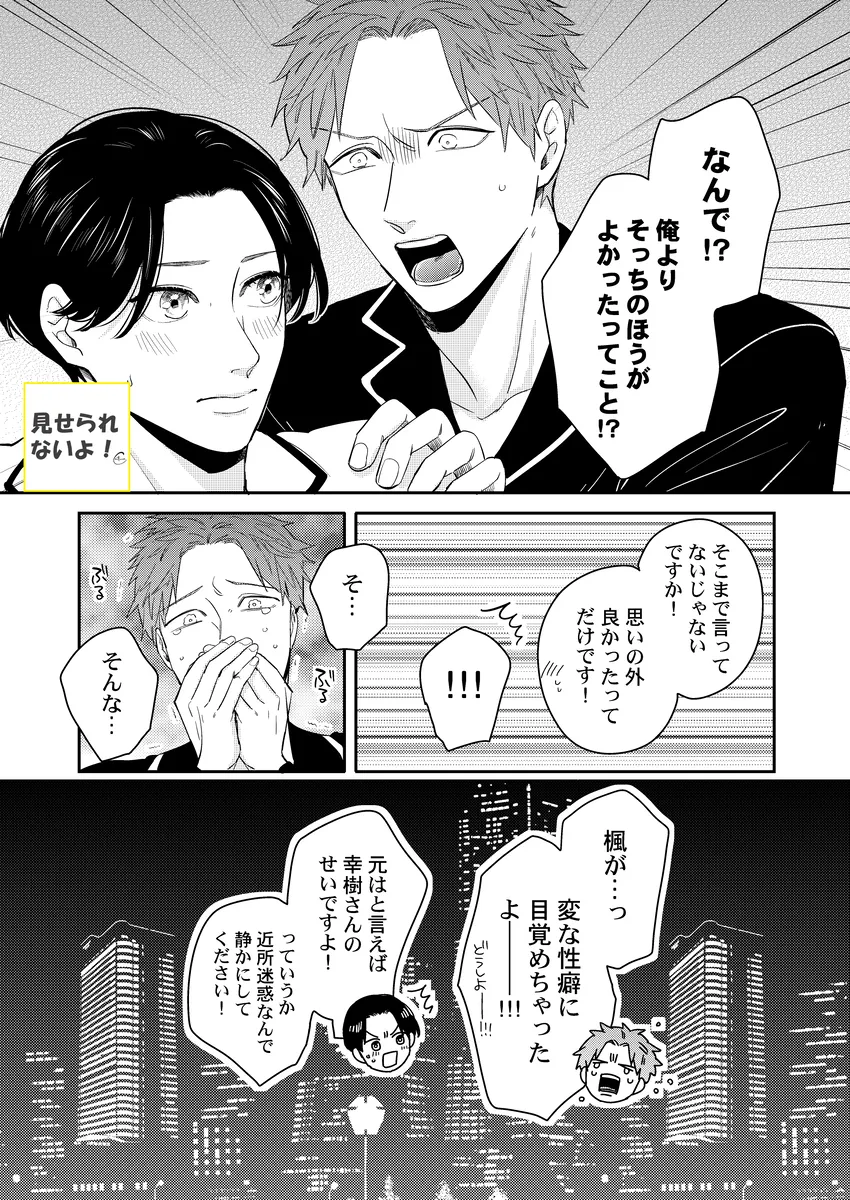 彼氏の性癖が急に見えてしまって、平静でいられるわけがない。俳優の幸樹は、同棲中の恋人・楓が読んでいた本をきっかけに、「もしかして楓は寝取られ願望があるのか…?」と盛大に勘違い。自分以外の相手に興奮するのかもしれない――そんな不安と嫉妬で、ひとり勝手に大混乱していく。けれど、当の楓はどこか落ち着いていて、幸樹の暴走を受け止めながらも反応は予想外。噛み合わない会話、すれ違う本音、そのまま空気はじわじわと熱を帯びていく。拗らせた独占欲、抑えきれない焦り、好きだからこそ止まらない嫉妬。誤解から始まるのに、気づけば見えてくるのは、ふたりの関係の近さと重たさ。年上彼氏がひたすら空回って、年下彼氏はどこか余裕ありげ。この温度差がたまらない、勘違い系BL。