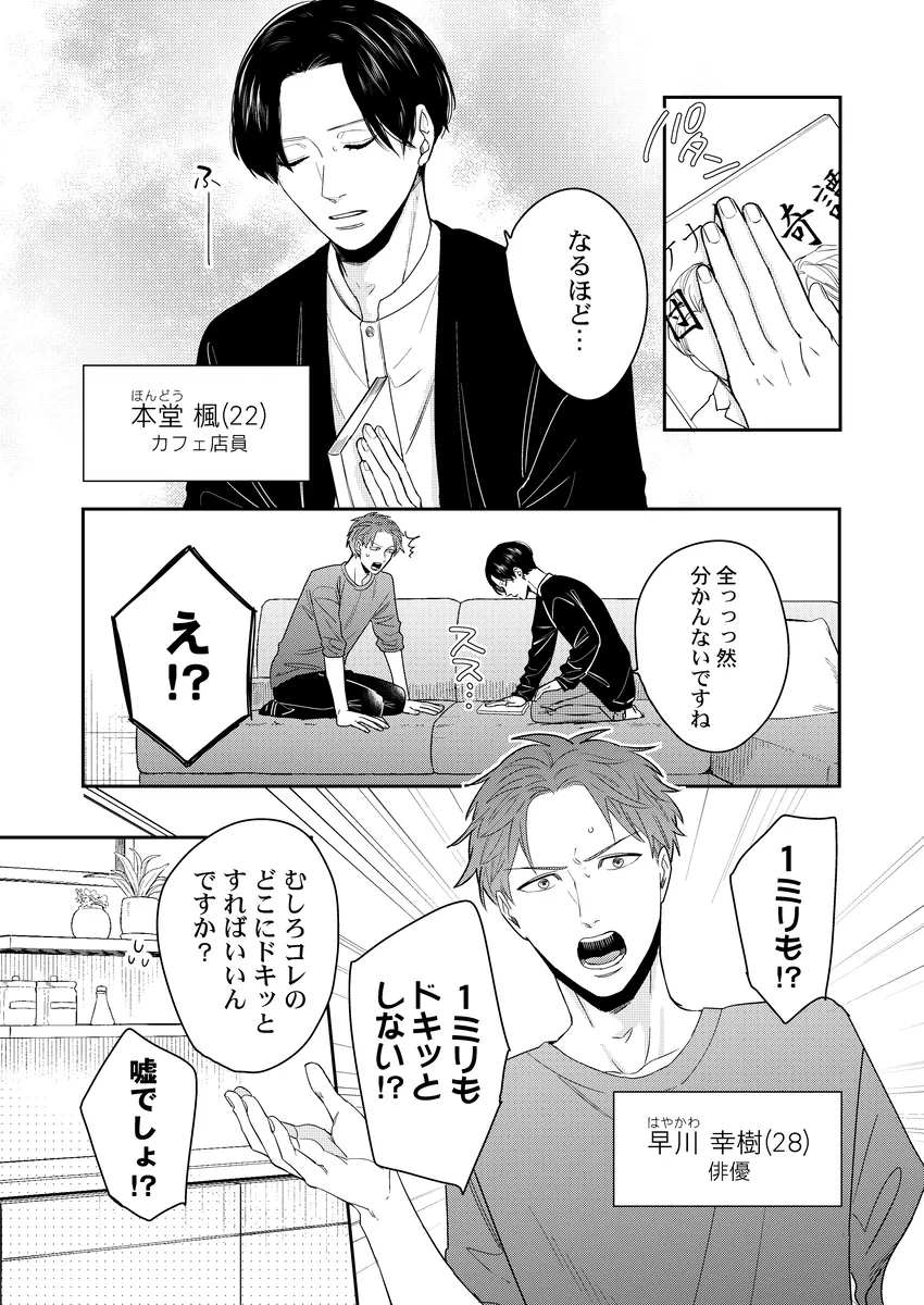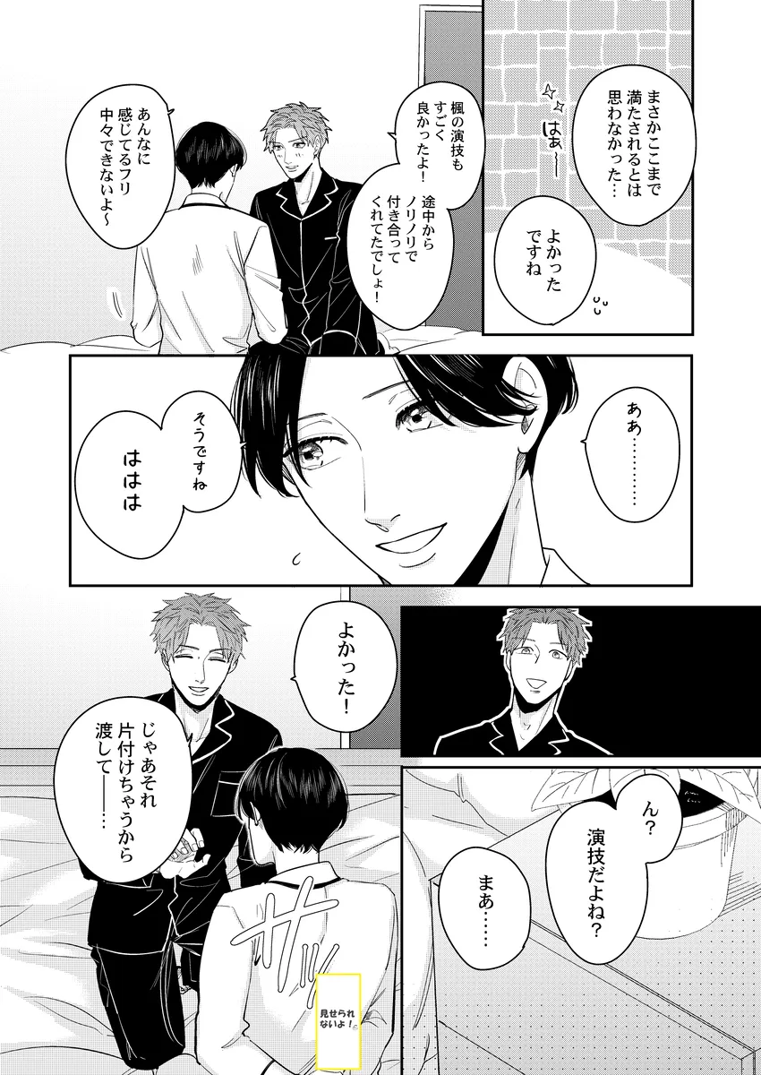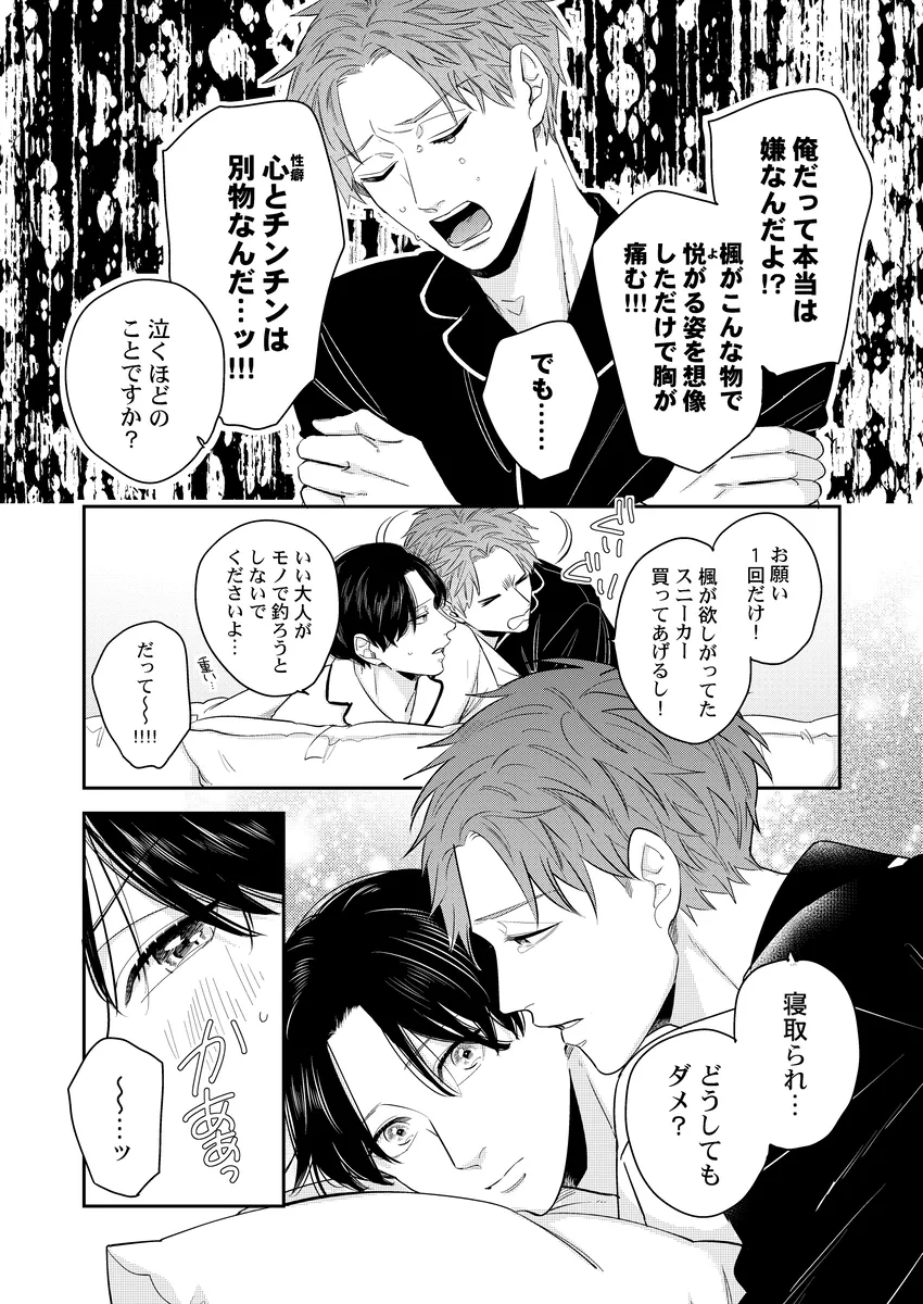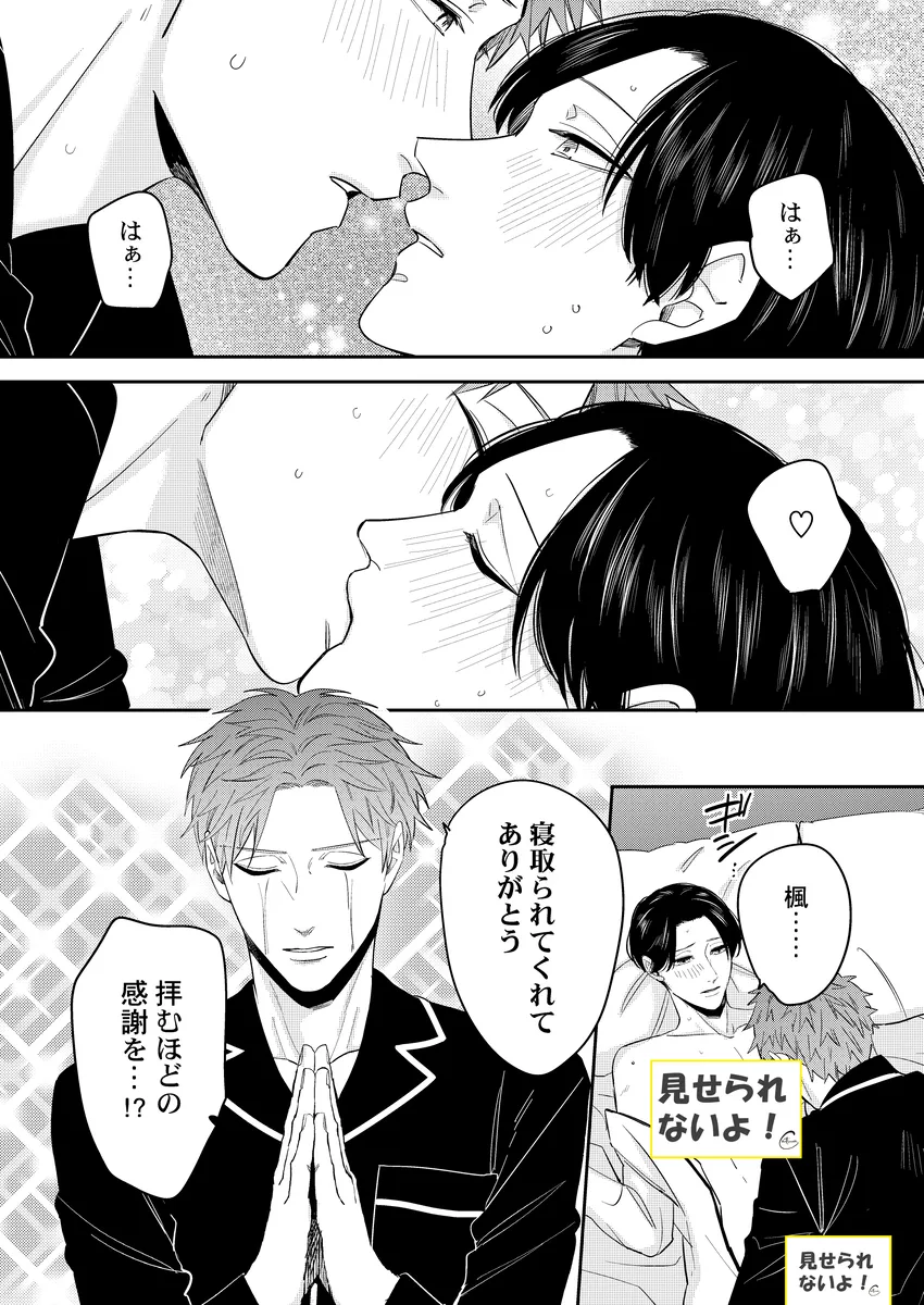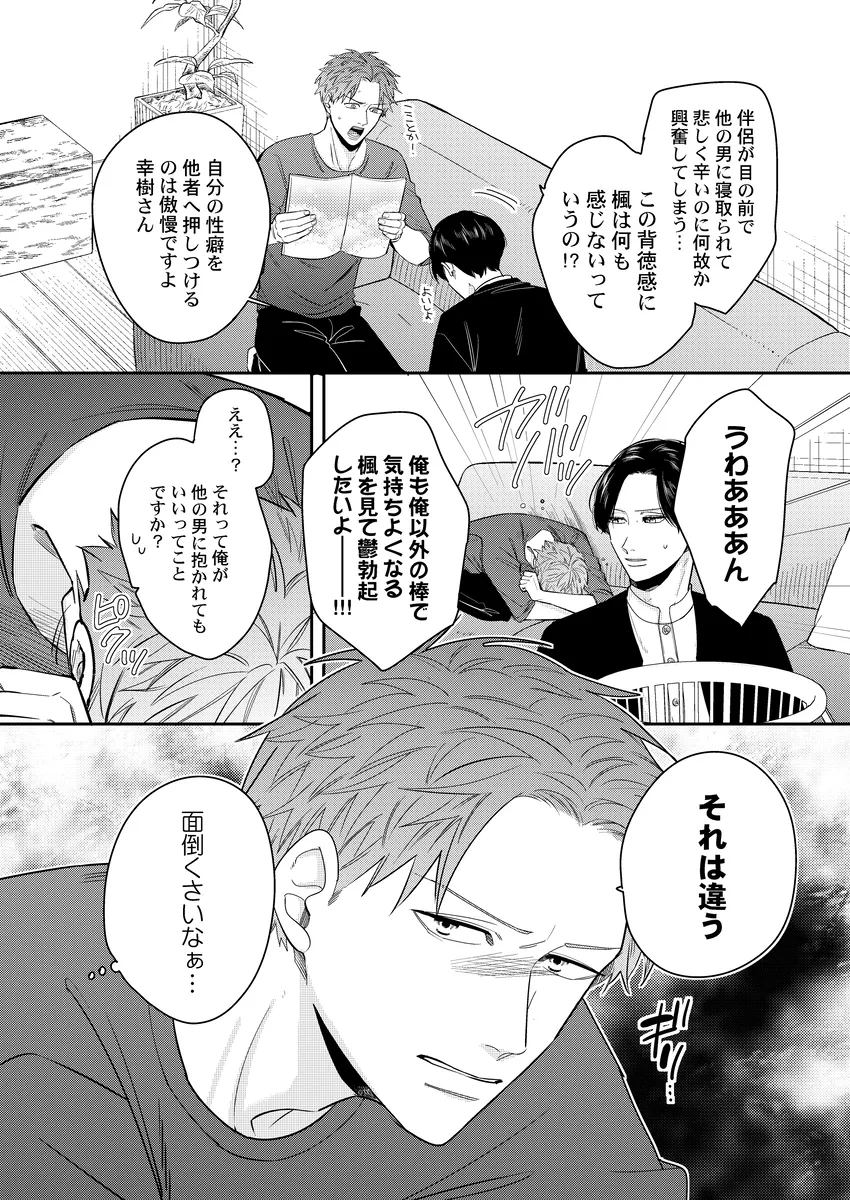 彼氏の性癖が急に見えてしまって、平静でいられるわけがない。俳優の幸樹は、同棲中の恋人・楓が読んでいた本をきっかけに、「もしかして楓は寝取られ願望があるのか…?」と盛大に勘違い。自分以外の相手に興奮するのかもしれない――そんな不安と嫉妬で、ひとり勝手に大混乱していく。けれど、当の楓はどこか落ち着いていて、幸樹の暴走を受け止めながらも反応は予想外。噛み合わない会話、すれ違う本音、そのまま空気はじわじわと熱を帯びていく。拗らせた独占欲、抑えきれない焦り、好きだからこそ止まらない嫉妬。誤解から始まるのに、気づけば見えてくるのは、ふたりの関係の近さと重たさ。年上彼氏がひたすら空回って、年下彼氏はどこか余裕ありげ。この温度差がたまらない、勘違い系BL。