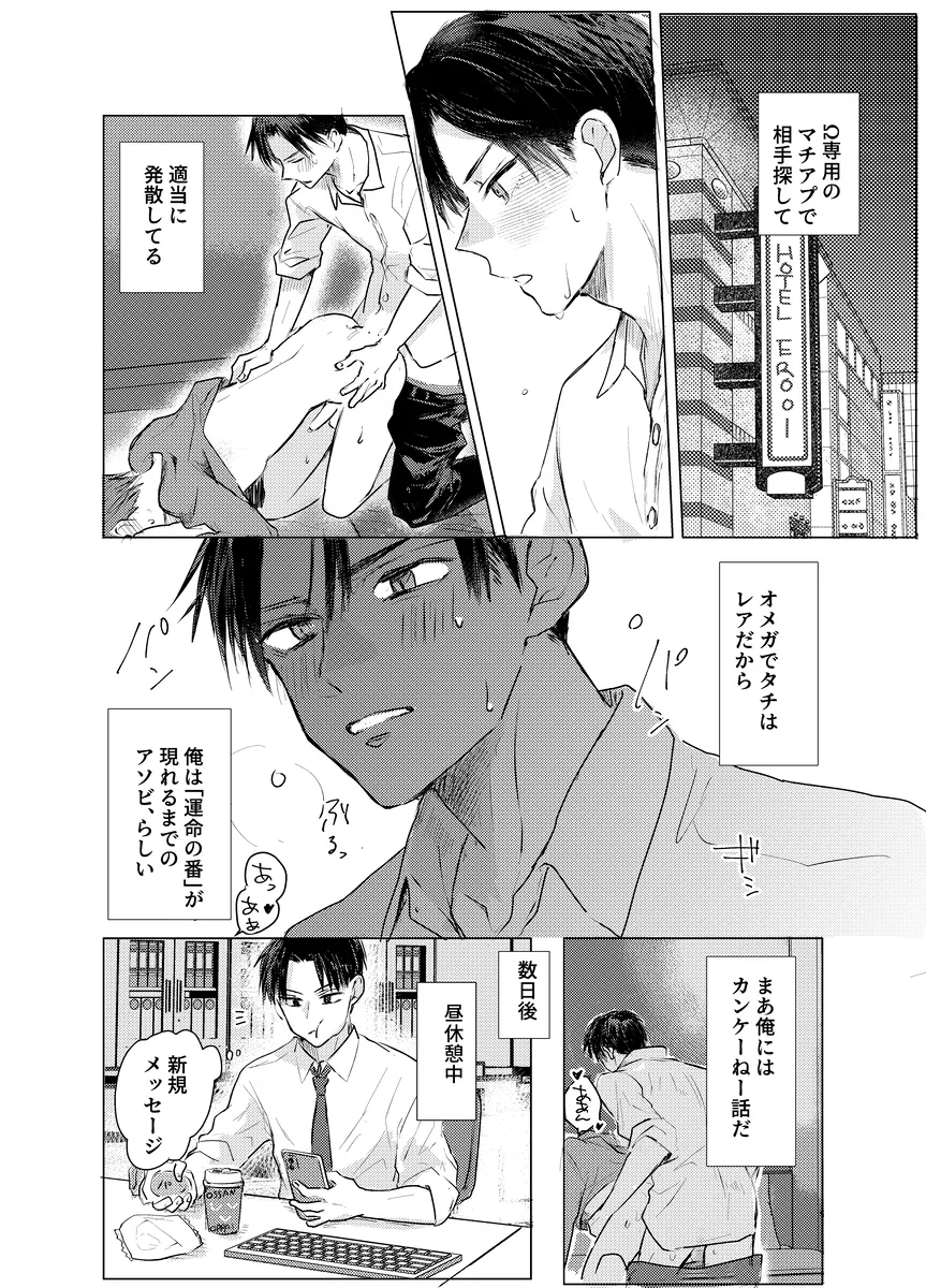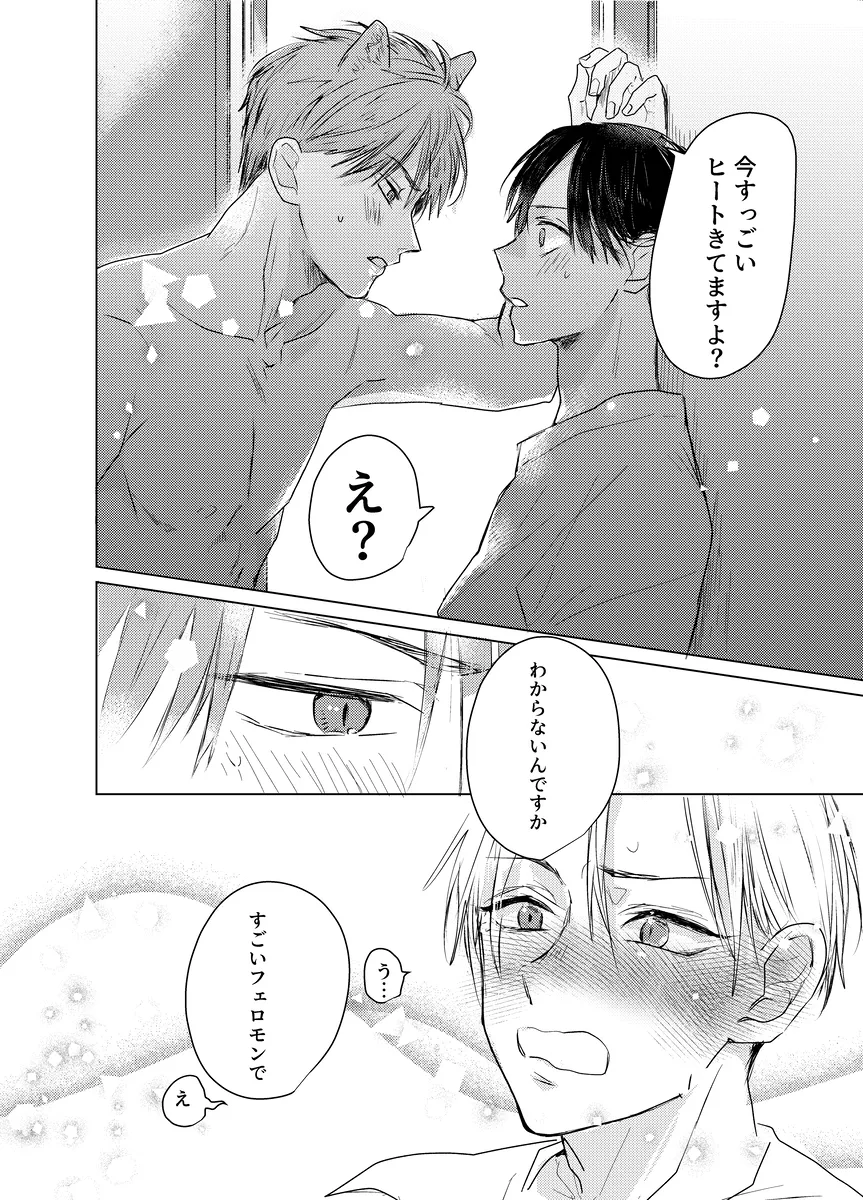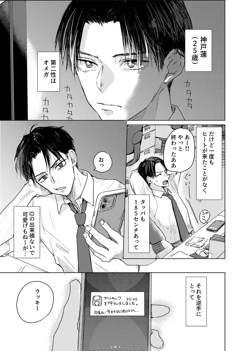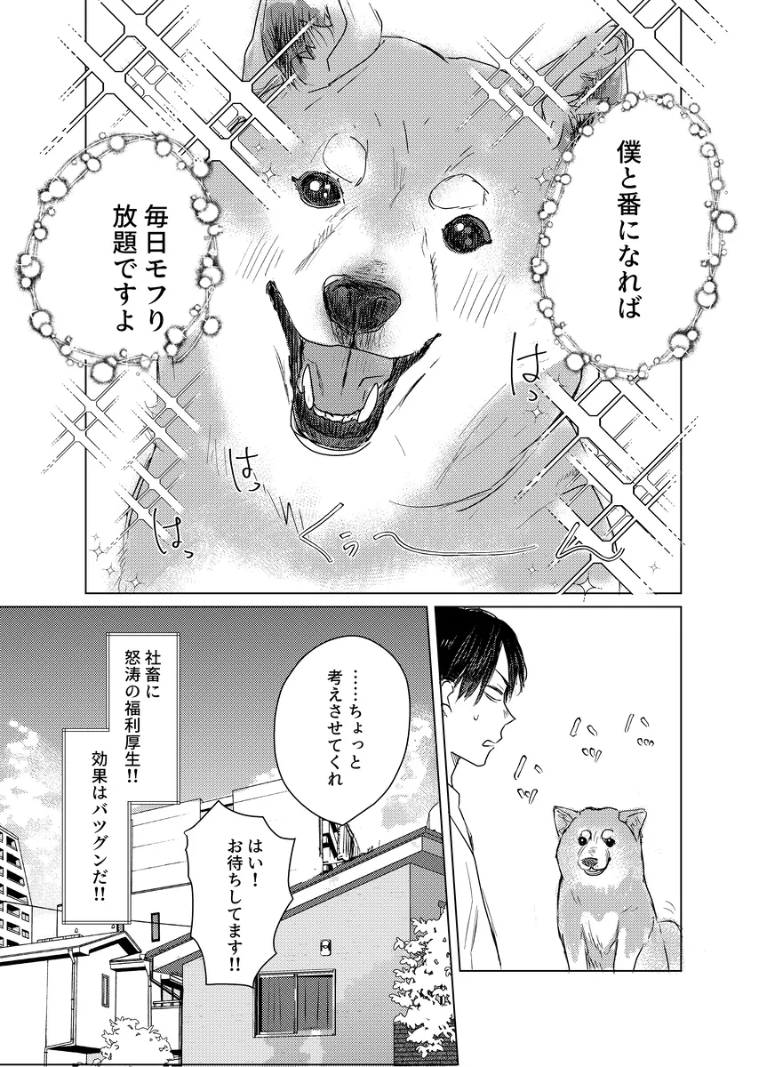 Ωでありながら発情期がなく、184センチの長身を持つ神戸蓮。Ωらしさとは無縁に過ごしていた彼は、ある日、αの芦名北斗から突然熱烈な告白を受ける。芦名は優秀なαでありながら、疲れるとシバ犬になってしまう「先祖返り」の体質持ち。神戸は突然の求愛に戸惑うが、ふわふわで愛らしいシバ犬姿の芦名には抗えず、つい甘やかしてしまう。「僕と番になれば毎日モフり放題ですよ」と真顔で迫る芦名に振り回されながらも、神戸の心は少しずつほぐれていく。Ωらしくない神戸と、犬になってでも一途に想いを伝える芦名の、もふもふ甘い溺愛ラブコメBL。